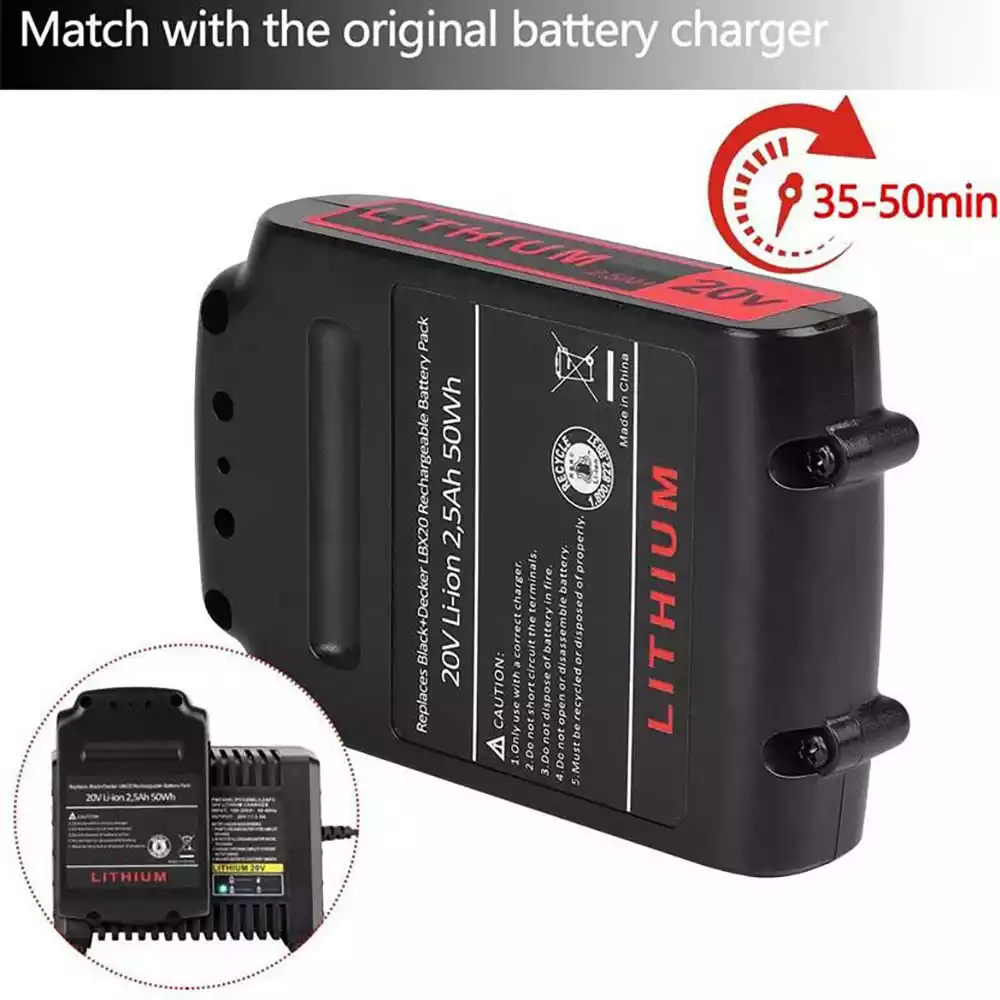 20V 2.5Ah Batteri til Black&Decker LBX4020 LBXR20 LBXR20B LBXR20-OPE LBXR2020 LB20 LBX20 LB2X4020
