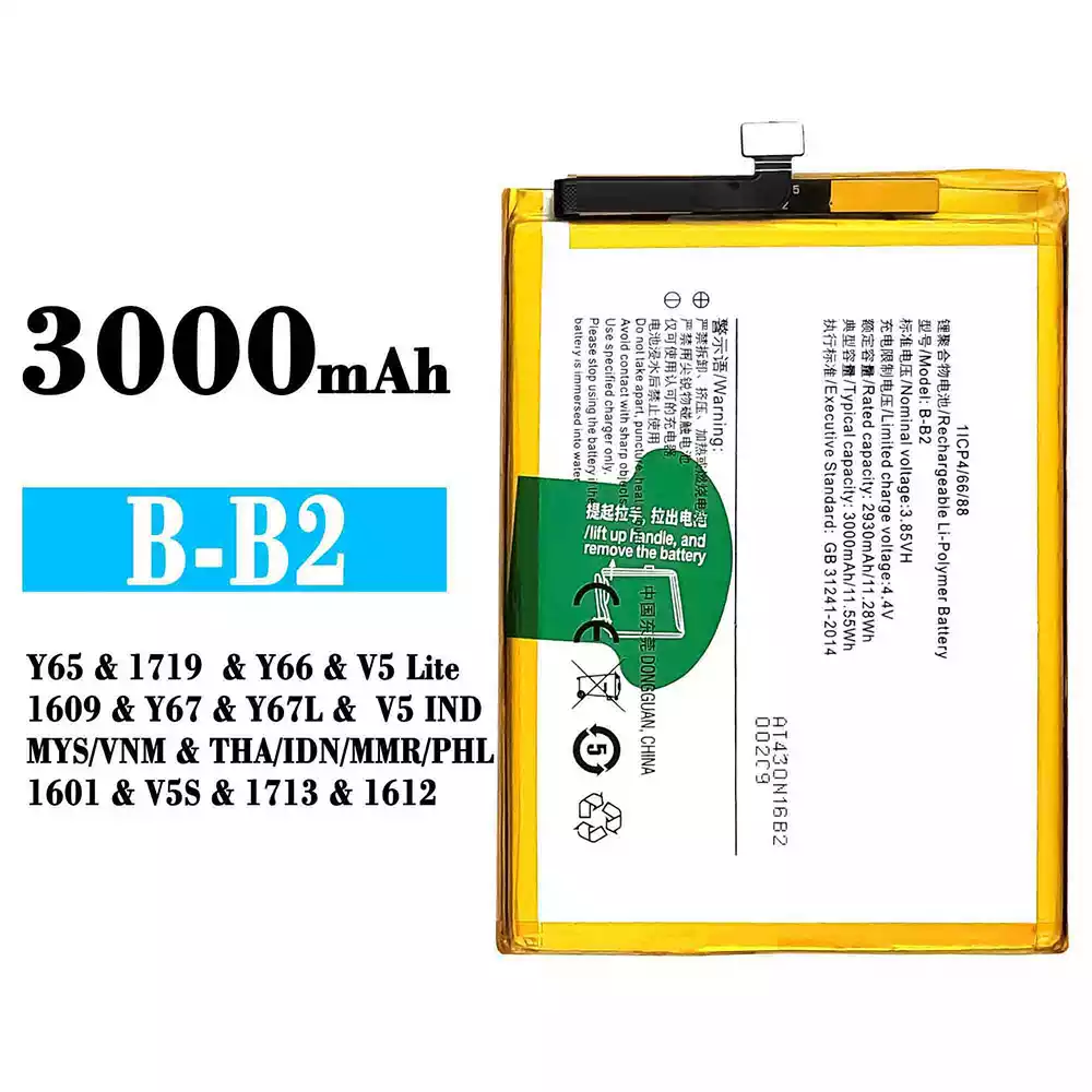 Batteri B-B2 til VIVO Y65 / 1719 / Y66 / V5 Lite / 1609 / Y67 / Y67L / V5 IND MYS VNM / THA IDN MMR PHL 1601 / V5S / 1713 / 1612