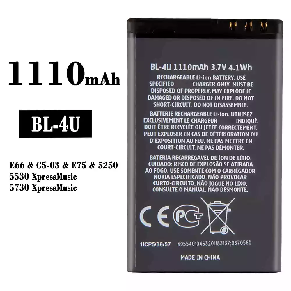 Batteri BL-4U til Nokia E66 / C5-03 / E75 / 5250 / 5530 XpressMusic / 5730 XpressMusic