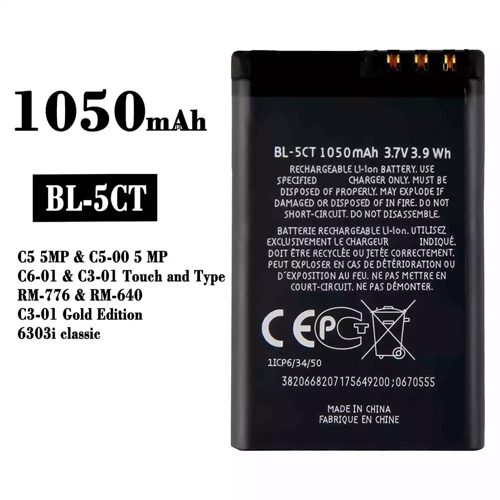 Batteri BL-5CT til Nokia C5 5MP / C5-00 5 MP / C6-01 / C3-01 Touch and Type / RM-776 / RM-640 /C3-01 Gold Edition / 6303i classic
