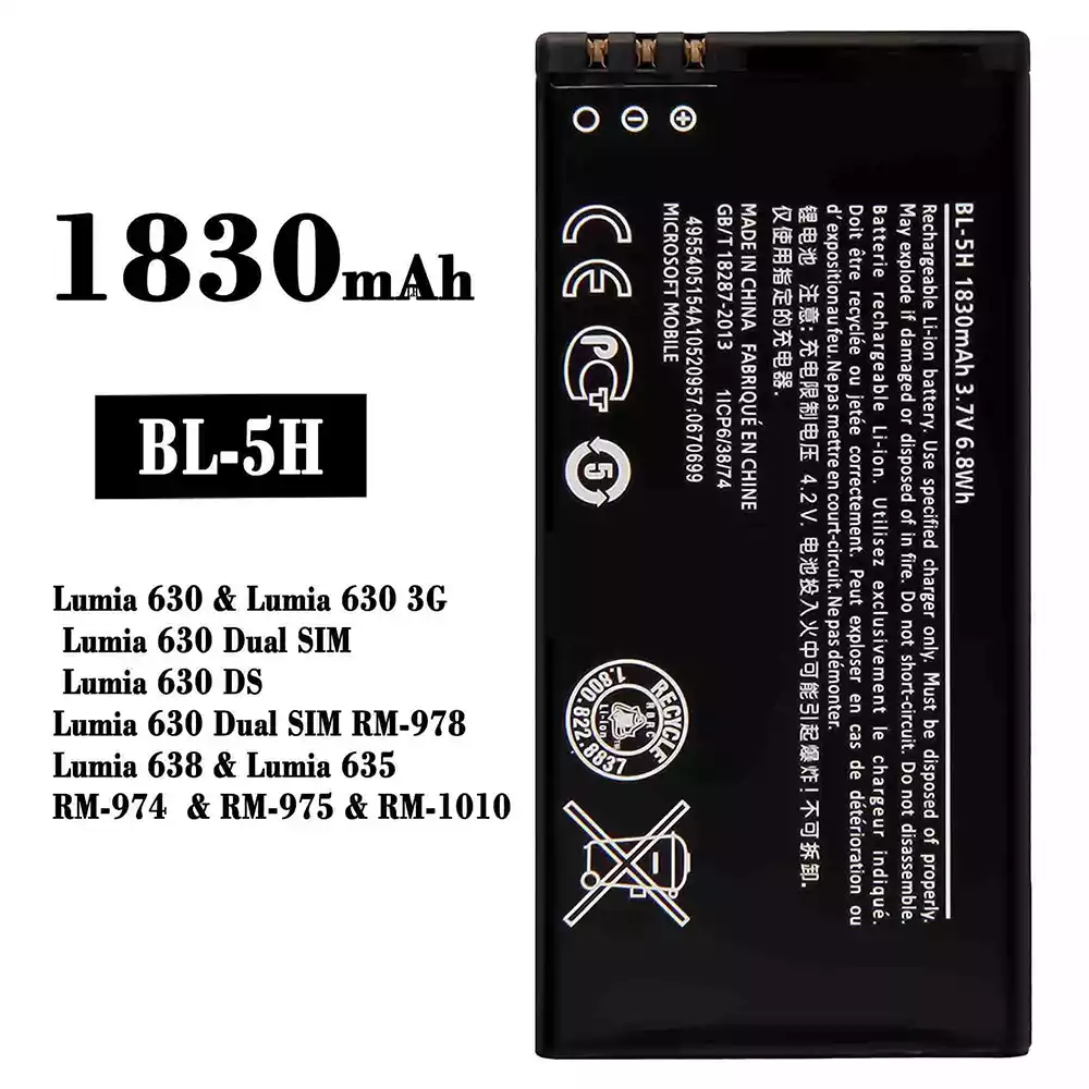 Batteri BL-5H til Nokia Lumia 630 / Lumia 630 3G / Lumia 630 Dual SIM / Lumia 630 DS / Lumia 630 Dual SIM RM-978 / Lumia 638 / Lumia 635 / RM-974 / RM-975 / RM-1010