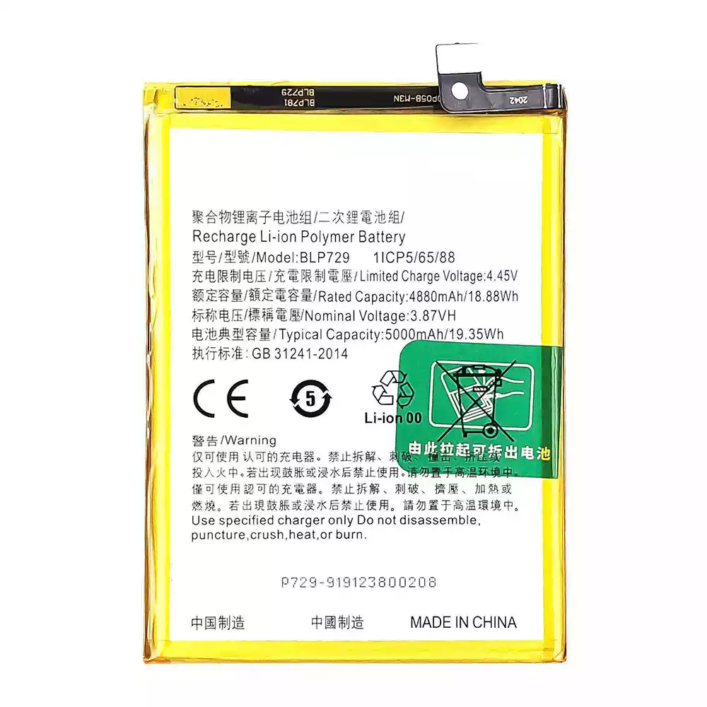 Batteri BLP729 til OPPO Realme 5 / Realme 5i / Realme 5s / Realme C3 / Realme C3 (3 cameras) / Realme C11 2020 / Realme C21 / Realme C21Y / Realme C20