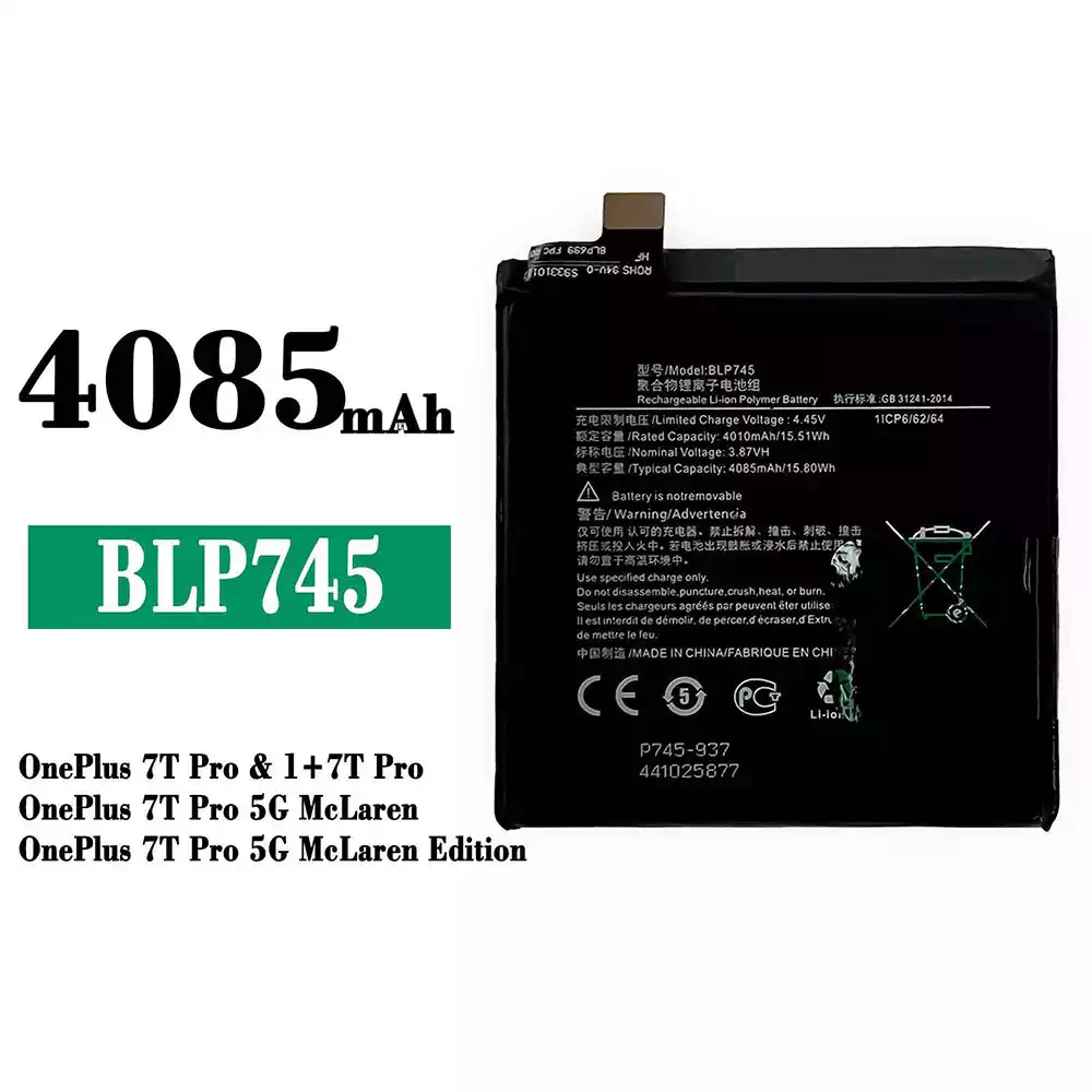 Batteri BLP745 til OPPO OnePlus 7T Pro / 1+7T Pro / OnePlus 7T Pro 5G McLaren / OnePlus 7T Pro 5G McLaren Edition