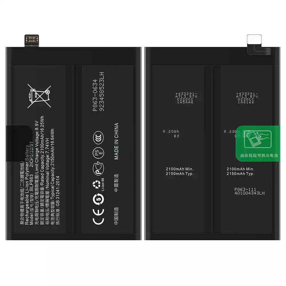 Batteri BLP863 til OPPO RENO 6 5G / CPH2251 / PEQM00