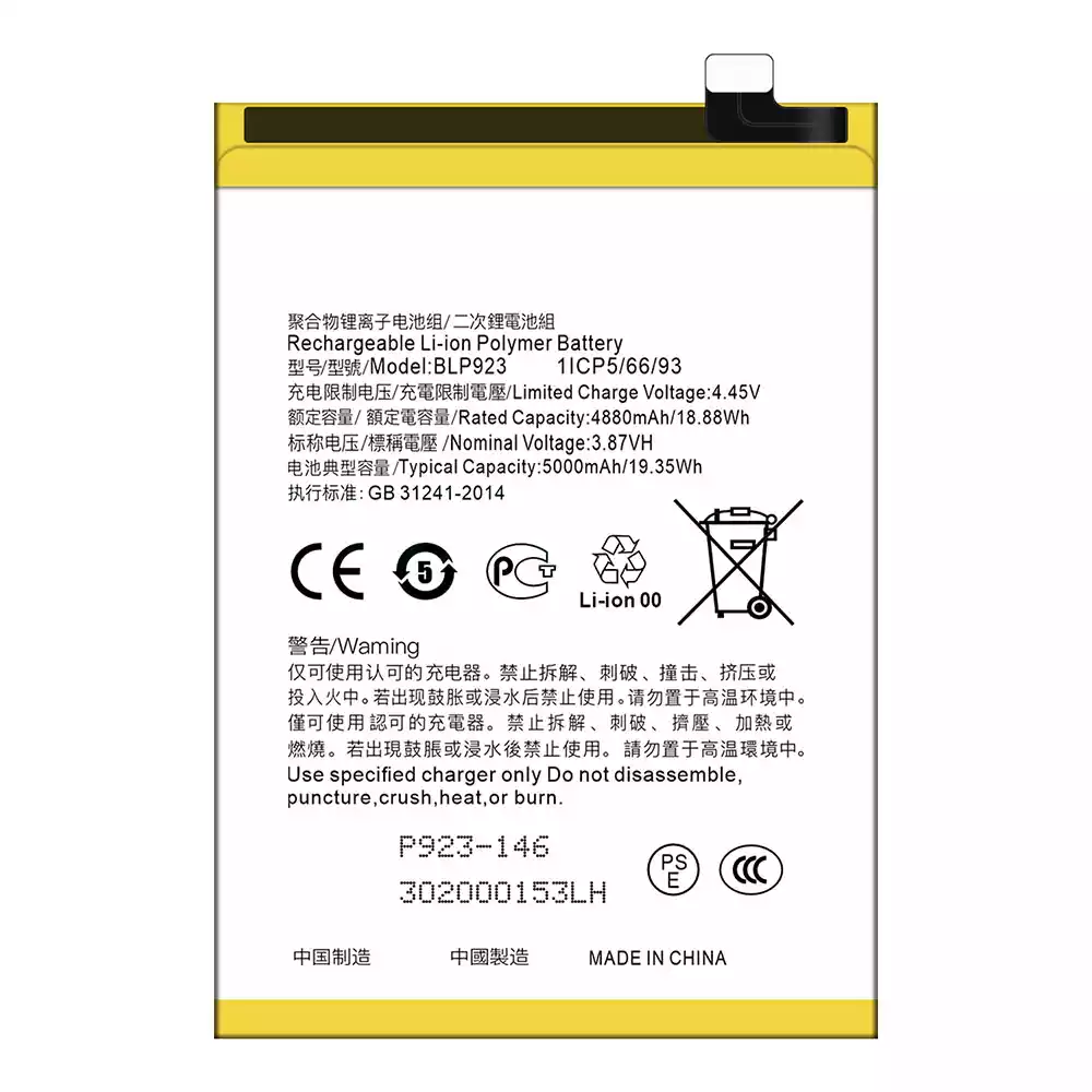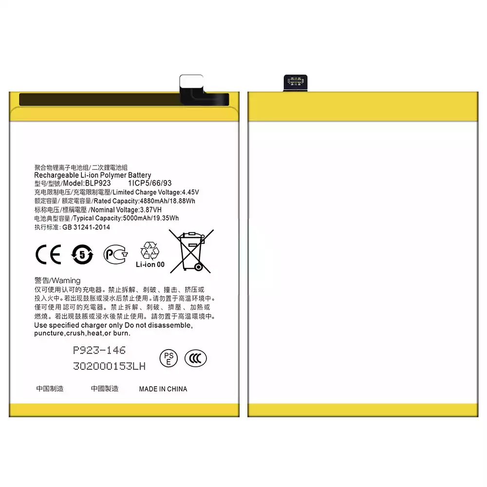Batteri BLP923 til OPPO A57 2020 /A57 4G 2022 /A57 2022 /A77 4G /A77 5G /A77s /A78 5G /A97 5G / K10 5G / OnePlus Nord N20 SE /OnePlus Nord N300 5G /Realme C51