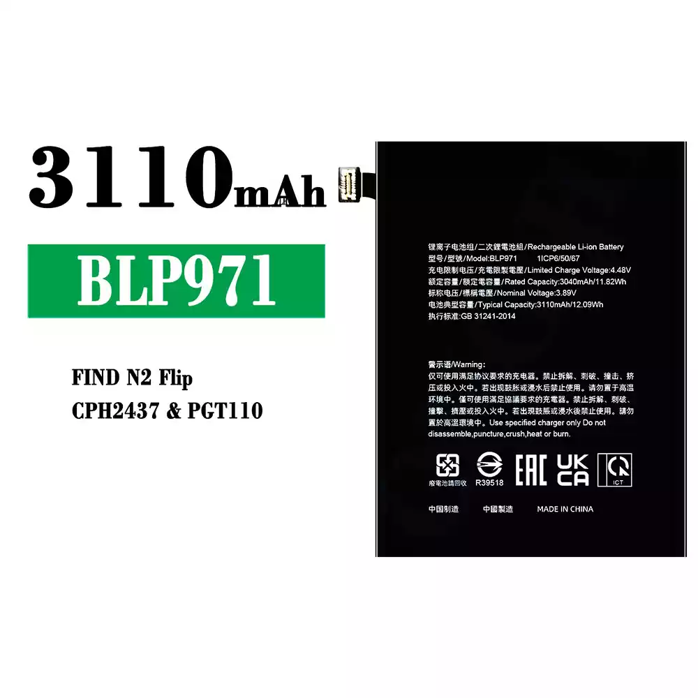 Batteri BLP971 til OPPO FIND N2 Flip/CPH2437/PGT110