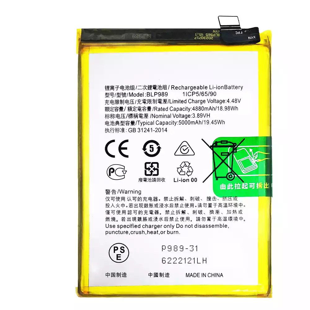 Batteri BLP989 til OPPO A98 5G /1+nord N30 5G /Nord CE 3 Lite /OnePlus Nord N30 5G /CPH2389 /OnePlus Nord CE 3Lite /CPH2467 /CPH2465