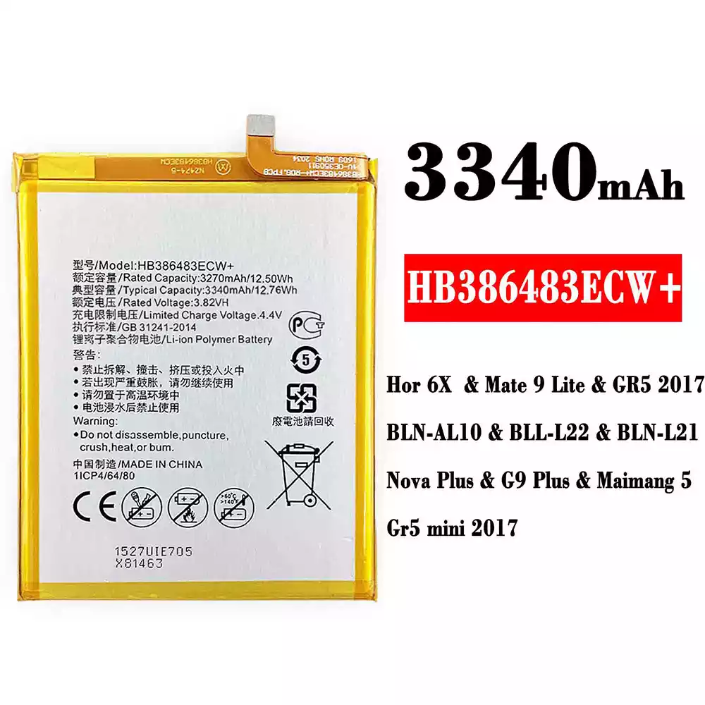 Batteri HB386483ECW+ til HUAWEI Honor 6X / Mate 9 Lite / GR5 2017 / BLN-AL10 / BLL-L22 / BLN-L21 / Nova Plus / G9 Plus / Maimang 5 /Gr5 mini 2017