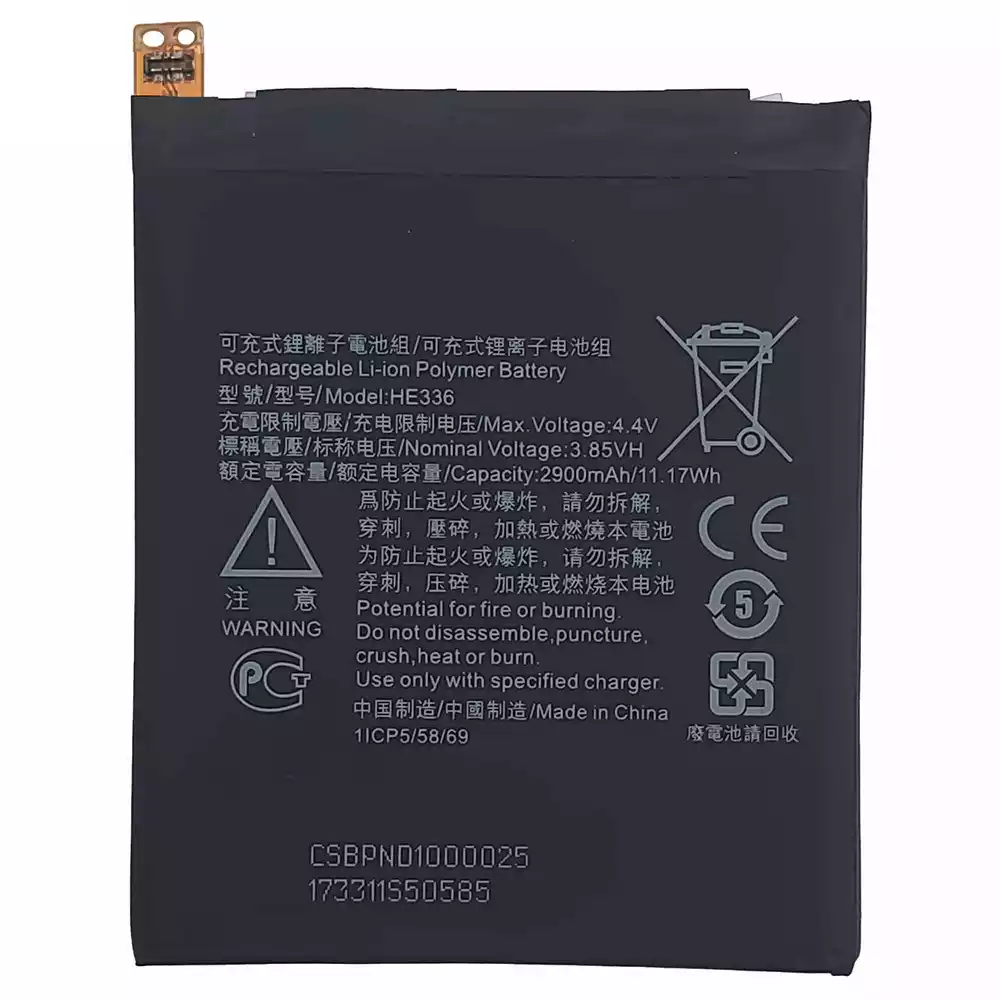 Batteri HE336 til Nokia 3.1 / 5.1 / 5 / 5 Dual / TA-1049 / TA-1057 / TA-1063 / TA-1070 / TA-1074 / TA-1075 / TA-1061 / TA-1088 / TA-1081 / TA-1076 / TA-1053 / TA-1024 / TA-1044 / TA-1027