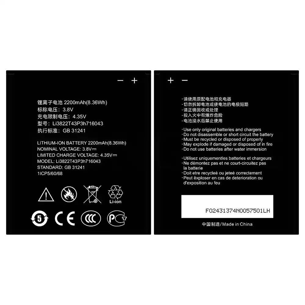 Batteri Li3822T43P3h716043 til ZTE Blade A320/BA320
