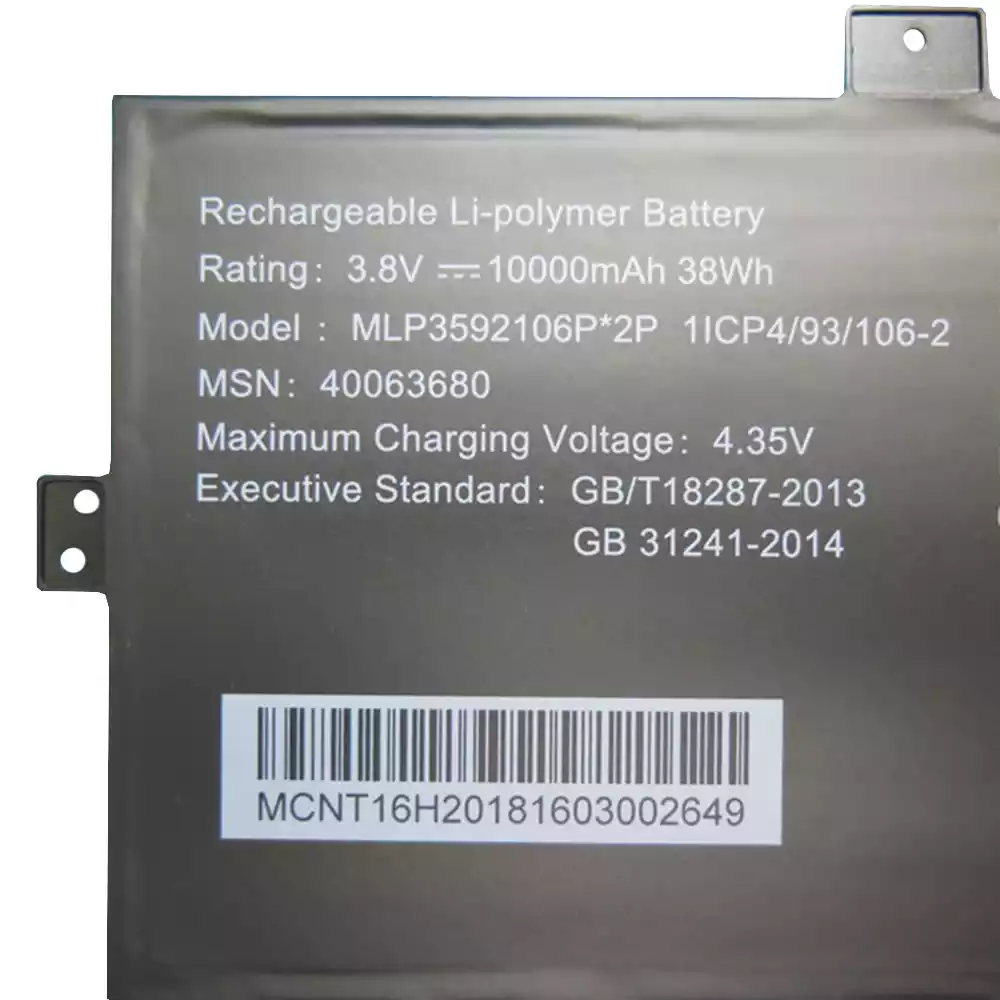 Specifikationer Spænding:3.8V Kapacitet:10000mAh(38Wh) Kemi: Li-Polymer Varetype: ny Garanti: 12 måneders
