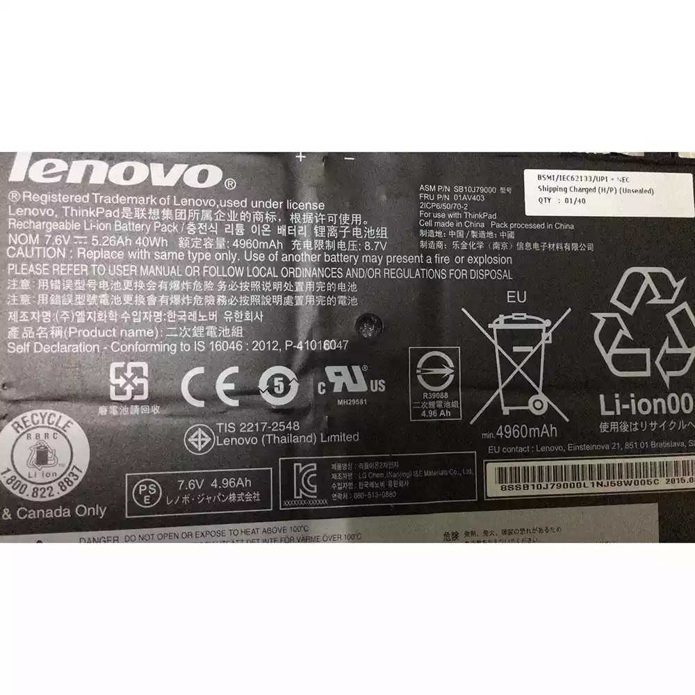 Batteri til bærbar computer LENOVO SB10J79000,01AV403